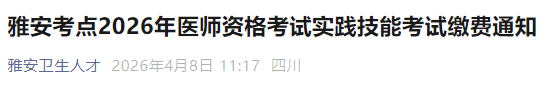 四川雅安2026年口腔执业医师考试实践技能缴费4月13日截止!以下为四川雅安考点官方提醒,请相关考生仔细查看,按时完成技能缴费!
