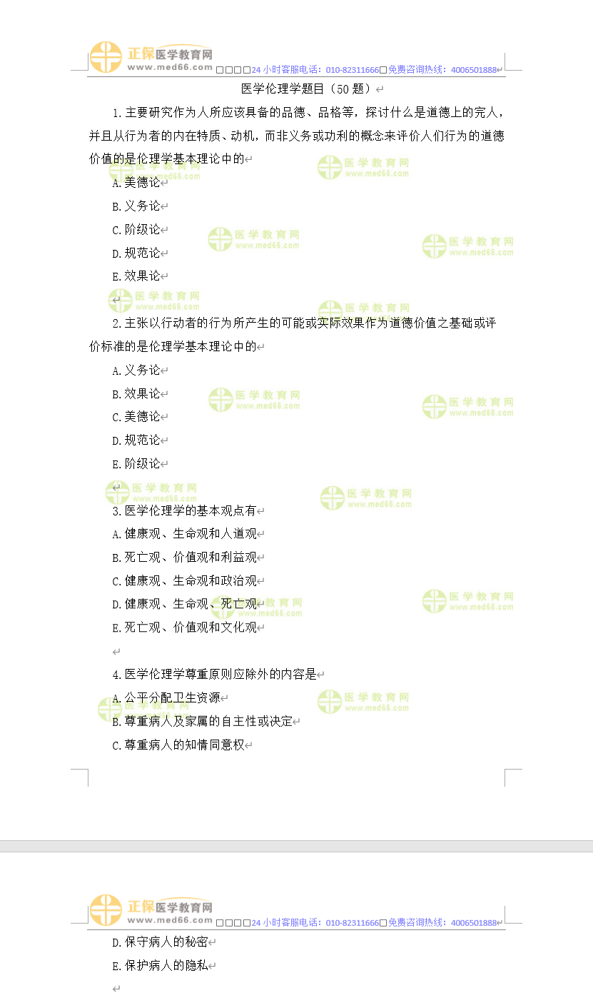 点击下载:《医学伦理学》冲刺50题(附解析)《医学伦理学》冲刺50题(附解析)↓↓↓《医学伦理学》冲刺50题(附解析)〖医学教育网版权所有,转载必究〗