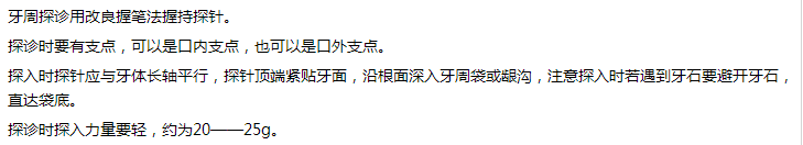 关于口腔执业医师实践技能第一站考试中牙周探诊检查具体操作步骤,医学教育网编辑整理相关资料分享给大家,希望对大家复习口腔执业医师实践技能考试有所帮助!