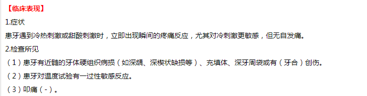 1.入洞疼痛,且刺激去除后症状不持续。牙髓温度试验的反应为“正常”或“同对照牙”。