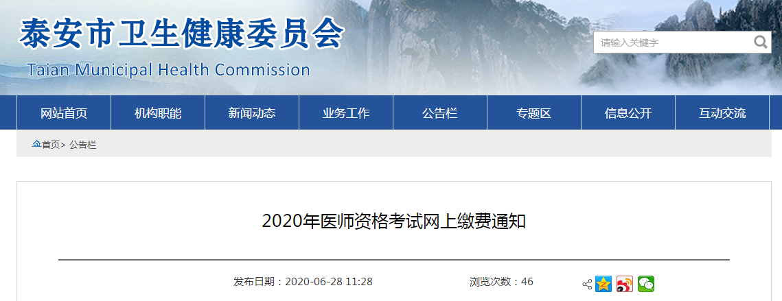 “2020年国家口腔执业医师资格考试泰安考点实践技能网上缴费的通知”的文章,由医学教育网编辑整理搜集,希望可以帮助到大家,更多的文章随时关注医学教育网!