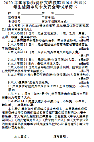 临沂考点2020年口腔执业医师资格实践技能考生防疫须知