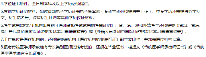 9.执业助理医师申报执业医师考试的,还须提交执业助理医师《医师资格证书》、《医师执业证书》原件。《执业助理医师报考执业医师执业期考核证明》(如在执业注册过程中有变更记录,导致注册时间不满足报考年限的,须提供首次执业注册证明)。