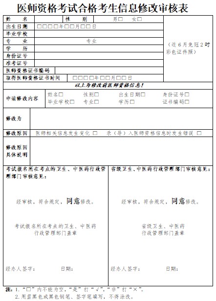 二、修改医师资格信息,由申请人填写《医师资格考试合格考生信息修改审核表》并提交有关材料,向考试报名所在考点的卫生、中医药行政管理部门提出申请。