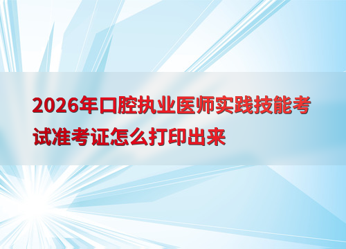 2026年口腔执业医师实践技能考试时间为6月6日至11日,准考证打印时间因地区而异,一般在考前1-2周登录国家医学考试中心官网进行打印。