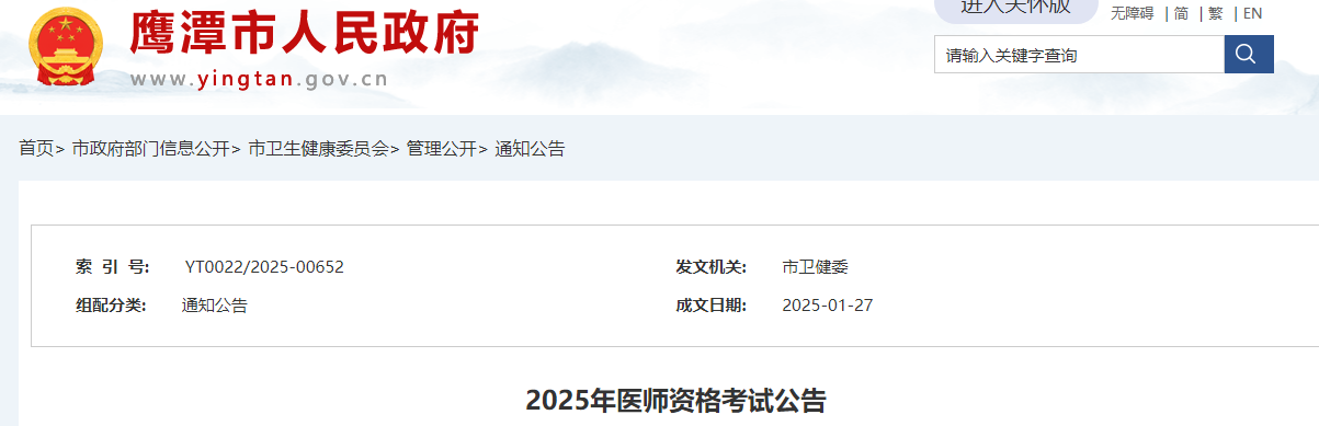 2025年医师资格考试(江西鹰潭考点)报名审核安排&要求已公布!请相关考生及时查看官方通知要求,按时参与报名审核。