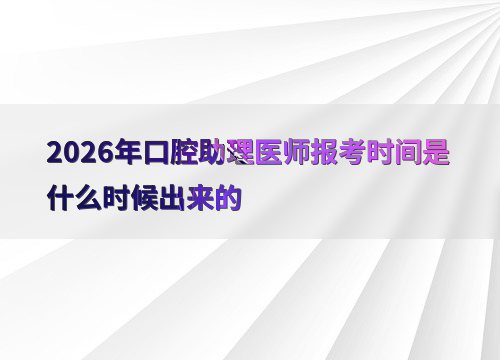根据往年规律,2026年口腔助理医师考试报名时间预计在1月至2月间启动。