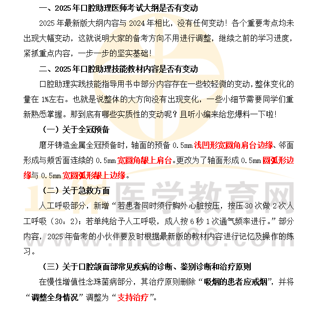 【免费下载】2025年口腔助理医师综合笔试教材变动细则汇总