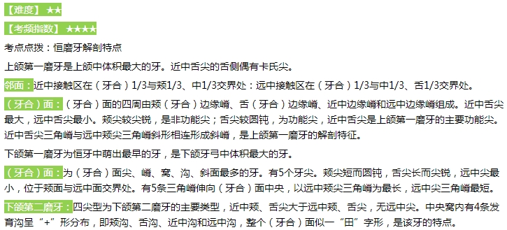 关于“口腔助理医师考试【恒磨牙解剖特点】考点试题及答案精讲”,医学教育网编辑整理具体题目及解析分享给大家,希望对大家复习口腔助理医师有查缺补漏的效果!
