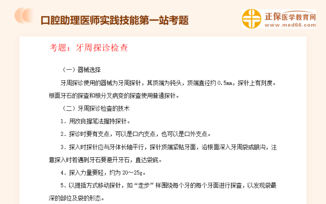 牙周探诊检查-口腔助理医师实践技能考试口腔检查知识点