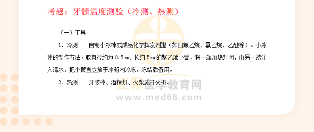 口腔助理医师实践技能考试口腔检查重点:牙髓温度测验(冷测、热测)