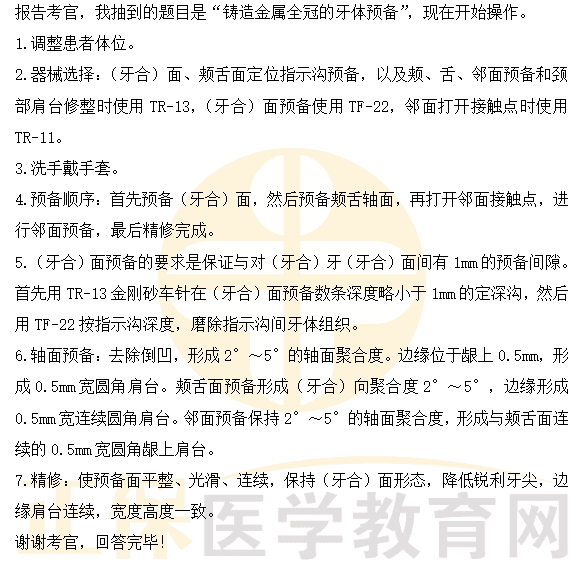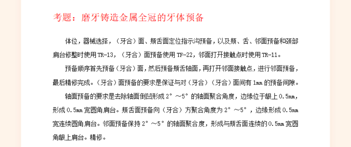 磨牙铸造金属全冠的牙体预备——2023口腔助理医师技能实操口述要领