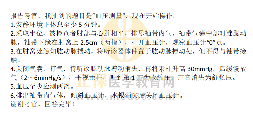口腔助理医师实践技能考试第3站急救技术:血压测量