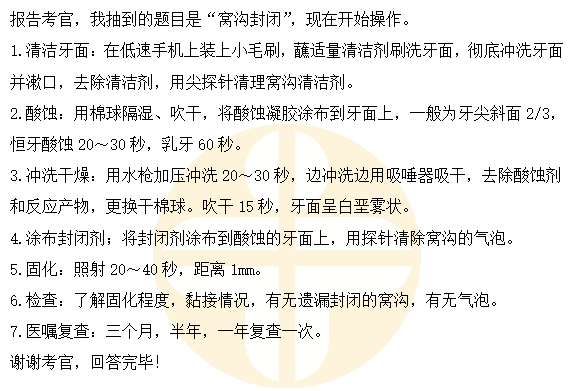 2023口腔助理医师技能实操口述要领:窝沟封闭