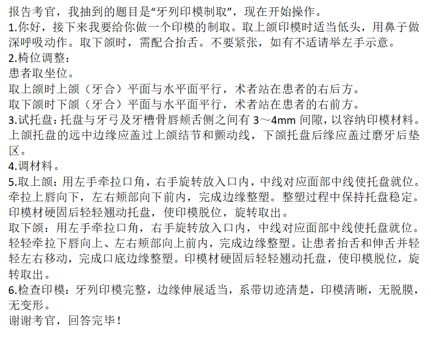 牙列印模制取-口腔助理医师实践技能考试口腔操作重点归纳