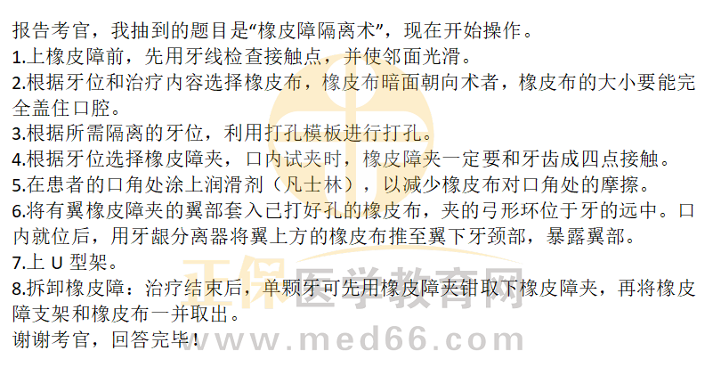 口腔助理医师资格实践技能考试【口腔操作】习题:橡皮障隔离术