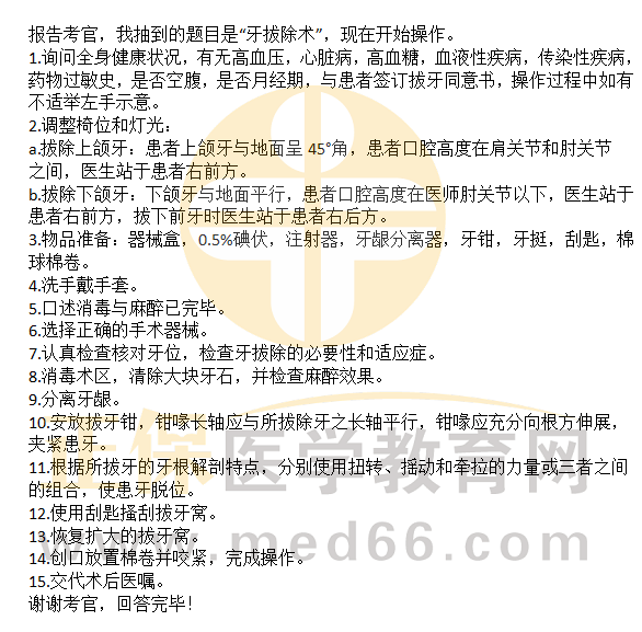 牙拔除术——2023口腔助理医师技能实操口述要领