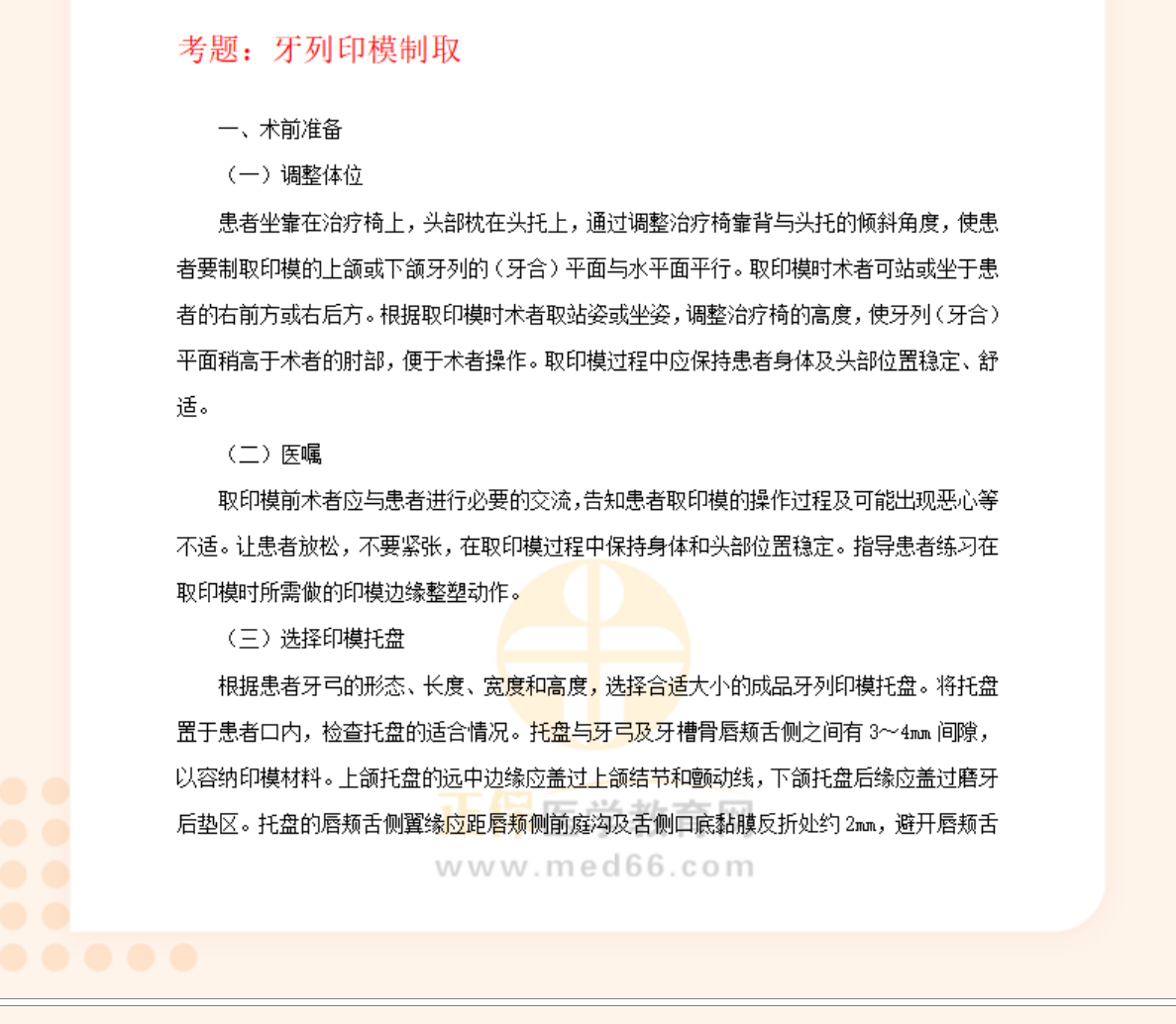 医学教育网编辑整理分享“牙列印模制取-口腔助理医师实践技能考试口腔操作重点归纳”如下,希望可以帮助大家更好地掌握相关重点!