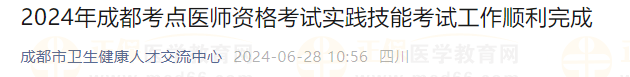 根据官方报道,12185名考生参考!四川成都考点2024年医师资格考试实践技能考试工作顺利完成。以下为官方通知内容: