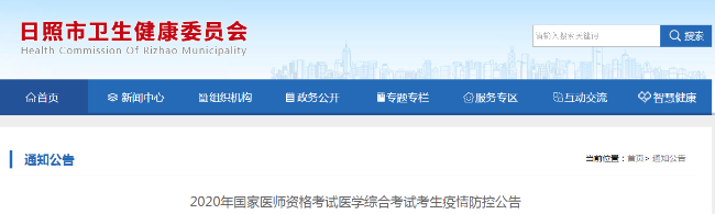 为确保2020年国家医师资格考试医学综合考试安全、顺利实施,保障广大考生和涉考工作人员身体健康,根据省委新冠肺炎疫情处置工作领导小组(指挥部)办公室《关于印发<山东省新冠肺炎疫情常态化防控期间考试防控指南>的通知》(第478号)及国家医师资格考试山东考区办公室疫情防控工作要求,现将考生有关疫情防控要求公告如下:
