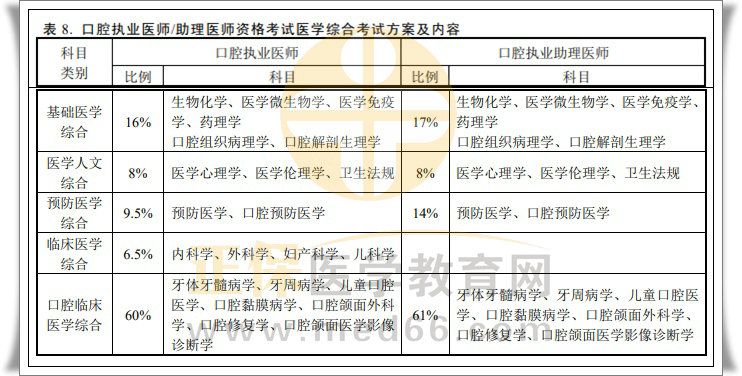 历年考题比例均有一定浮动,但总体出题规律没有重大变动,可以参考下表口腔助理医师考试综合笔试方案及内容: