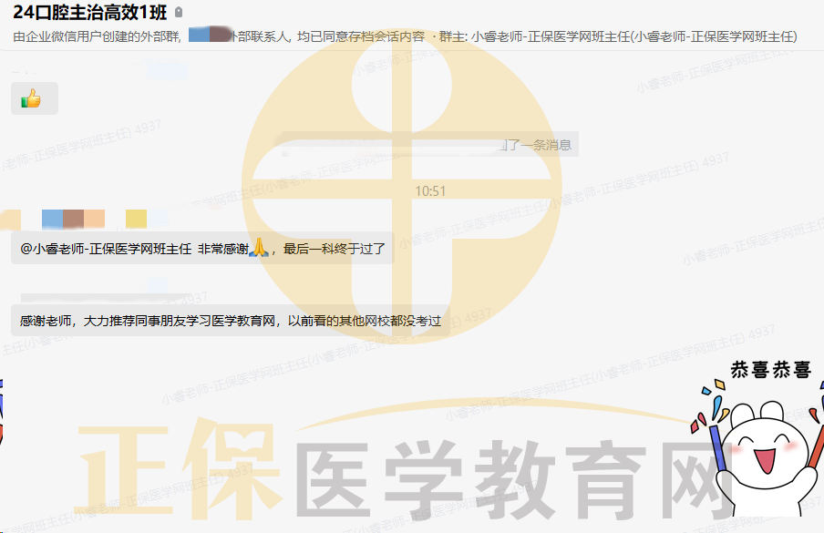 2024年口腔主治医师已过学员说:感谢老师,大力推荐同事朋友学习医学教育网!