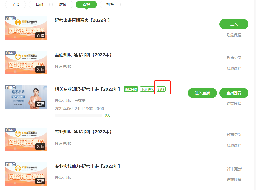 第二步:点击【讲义】,找到延考串讲相应科目课程