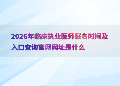 预计2026年临床执业医师考试报名时间为1月至2月,参考近年安排(如2025年为2月8日—2月21日),建议考生提前关注国家医学考试网动态。
