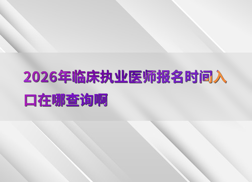 2026年临床执业医师考试报名预计在1月至2月进行,参考往年安排(如2025年为2月8日—2月21日),建议考生提前关注国家医学考试网公告。