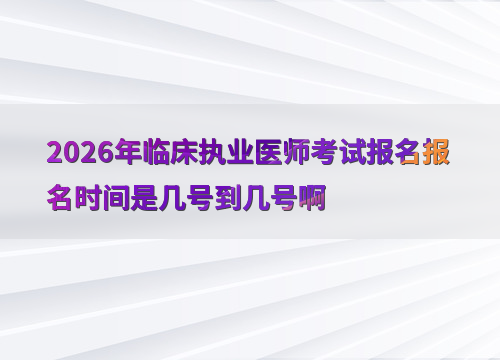 2026年临床执业医师考试报名预计在1月至2月进行,参考往年时间(如2025年为2月8日—2月21日),建议考生提前关注国家医学考试网公告。