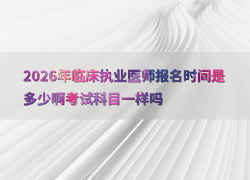2026年临床执业医师考试报名预计在1月至2月进行,参考往年时间(如2025年为2月8日—2月21日),建议考生提前关注国家医学考试网公告。