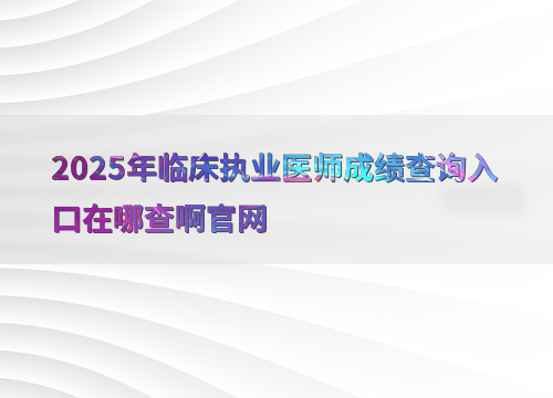 2025年临床执业医师综合考试成绩预计在9月公布,考生可通过国家医学考试网(http://www.nmec.org.cn/)首页“成绩查询入口”进行查询。