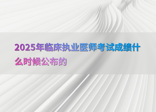 2025年临床执业医师综合考试成绩预计在9月公布,参考近年发布时间规律(2024年9月13日、2023年9月19日),考后约1个月为常见周期。