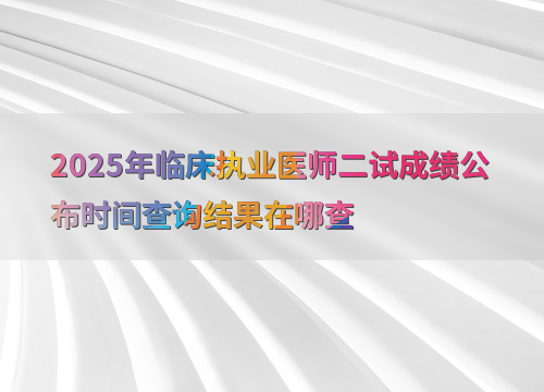 2025年临床执业医师一年两试成绩预计于12月初公布,参考近年数据(如2024年为11月30日),考生可提前做好查询准备。