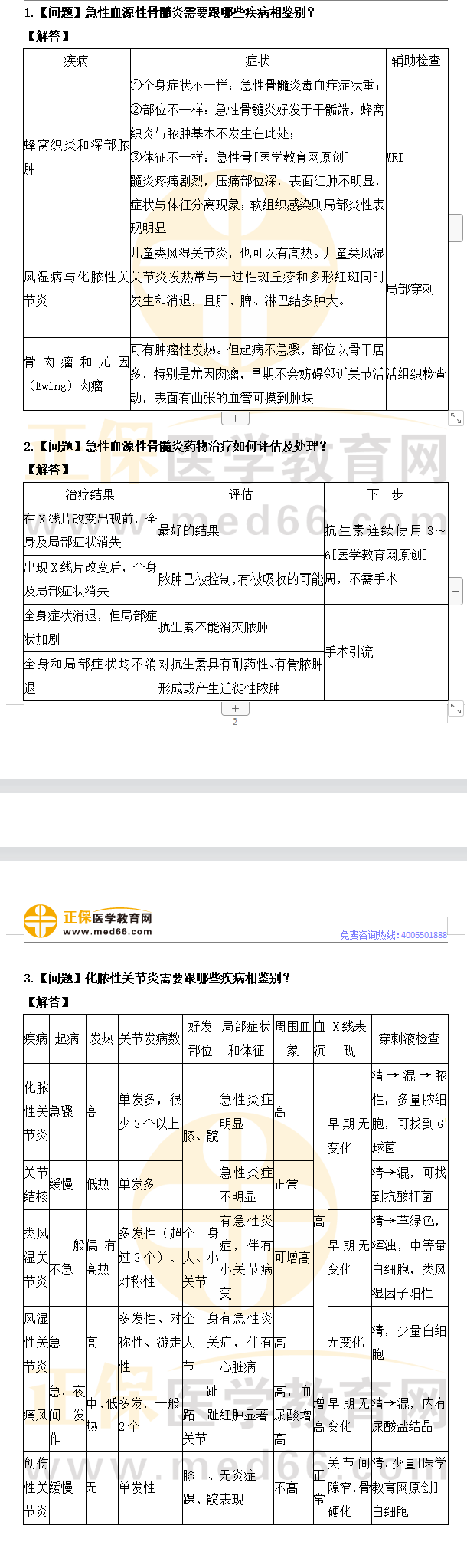 1.【问题】急性血源性骨髓炎需要跟哪些疾病相鉴别?