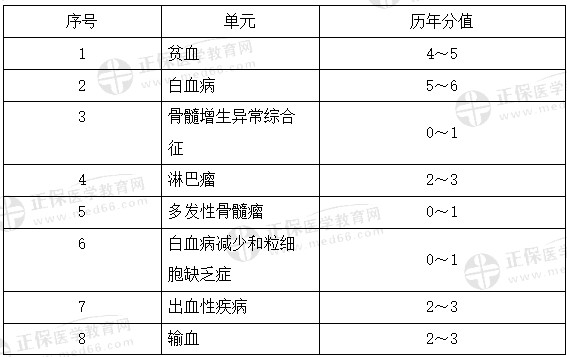 血液系统(约占20分左右),属于次重点内容,虽然血液系统的题目不是很多,但有些题目比较难,尤其是白血病和淋巴瘤的分类和治疗。建议考生:该记忆一定不要偷懒,多注重本系统列出的表格,进行对比记忆。
