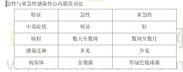考点:急性与亚急性感染性心内膜炎对比