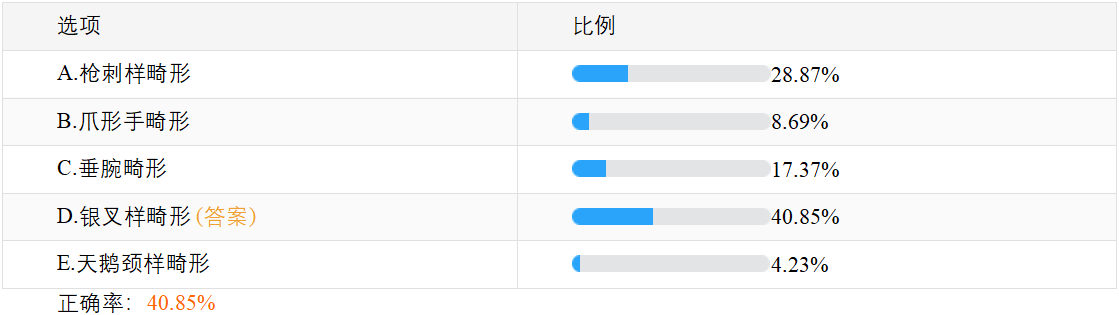 关于“桡骨远端骨折时侧面观察的畸形表现是?”,相信很多正在备战2023年临床执业医师考试的考生十分关注,此题在摸底测试50题(点击参加测试>>)中正确率仅为40.85%,建议大家及时复习,牢固掌握相关知识点!