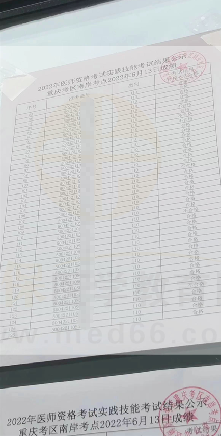 2022年6月13日重庆考区南岸考点医师实践技能考核成绩公布,医学教育网收到网校考生反馈,如下为南岸考点6月13日技能考试成绩公示名单: