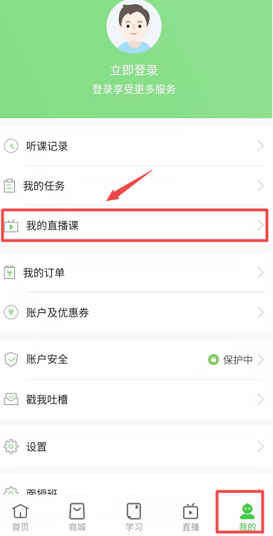 3、点击“我的”,进入“我的个人中心”点击“我的直播课”进入直播课页面;