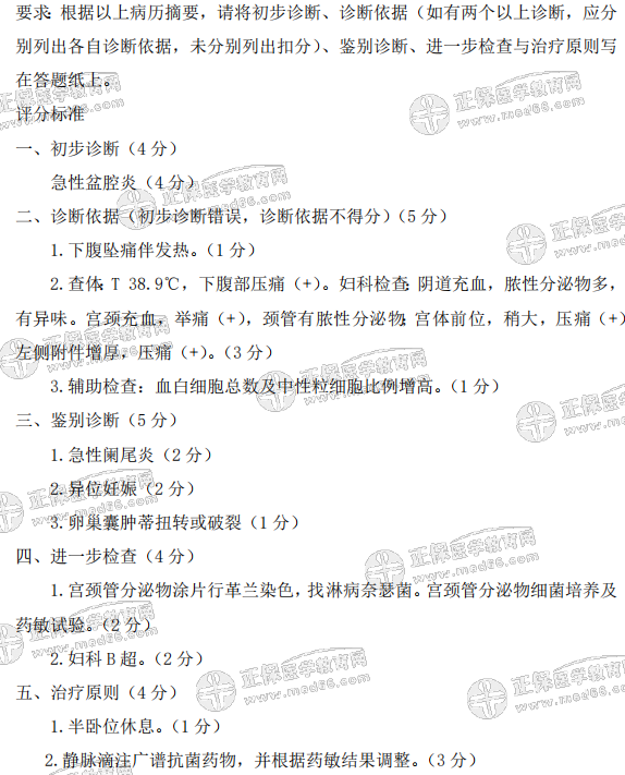 女性,38岁。下腹痛伴发热2天...为了方便各位考生熟悉临床执业医师实践技能考试题型及出题方式,评分标准等,医学教育网编辑为大家整理临床执业医师实践技能考试病例题,并附了详细评分标准!可参考复习。