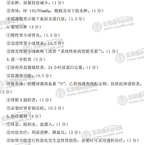 男性,17发。水肿1周,尿量减少1天...为了方便各位考生熟悉临床执业医师实践技能考试题型及出题方式,评分标准等,医学教育网编辑为大家整理临床执业医师实践技能考试病例题,并附了详细评分标准!可参考复习。