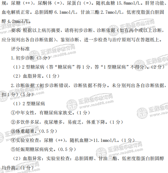 女性,45岁。烦渴、多饮2个月...为了方便各位考生熟悉临床执业医师实践技能考试题型及出题方式,评分标准等,医学教育网编辑为大家整理临床执业医师实践技能考试病例题,并附了详细评分标准!可参考复习。
