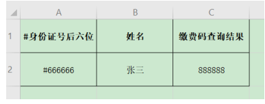 1、在附件中将“2020年医师资格实践技能考试缴费码查询系统”下载到电脑端(建议用WPSoffice打开),输入:井号(#)+身份证号后6位及姓名后会自动显示缴费码,如图: