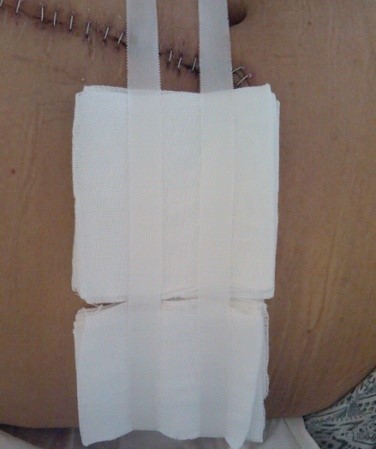 ——注意粘贴胶布的方向(与身体长轴垂直)