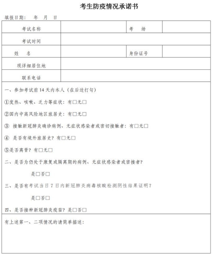 以上就是医学教育网关于“山西考区2021年医师资格考试综合考试考生防疫情况承诺书”的相关介绍,希望能够帮助到大家,更多资讯尽在医学教育网临床执业医师栏目!