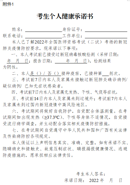 【下载打印】各地2022年医考二试/延考《健康承诺书/健康监测表》汇总!