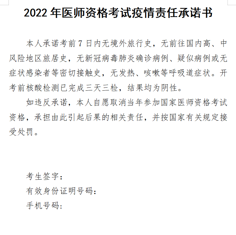【附件下载】2022年医师资格考试疫情责任承诺书