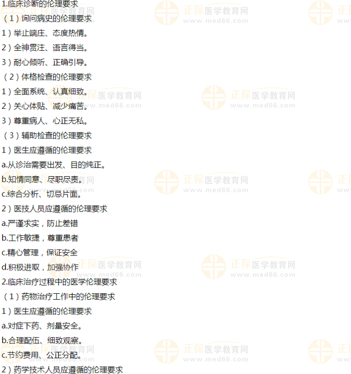 三项要求里,最需要掌握的是临床治疗过程中的临床诊断的伦理要求和医学道德要求。考试多见A1和A2型题。