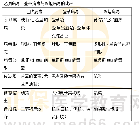医学教育网编辑整理分享“乙脑病毒、登革病毒与汉坦病毒的比较——临床医师资格考试必考知识点”内容如下,希望可以帮助大家巩固复习相关考点!
